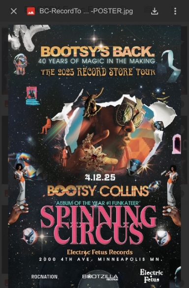 Bootsy Collins embarked on a nationwide sold out record store tour to promote the